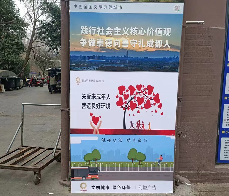 通過與街(jiē)道辦(bàn)共同努力,近日,我公(gōng)司在便民(mín)菜市及街(jiē)道安(ān)裝(zhuāng)的宣傳牌被漸次“點亮”。宣傳牌不僅統一展示了文(wén)明城市标語、街(jiē)道文(wén)化宣傳日常“标配件”,也展示了社會主義核心價值觀、文(wén)明、創新(xīn)宣傳等創文(wén)“高配件”,還為(wèi)農貿市場、街(jiē)道裝(zhuāng)扮一新(xīn),安(ān)裝(zhuāng)亮化環境“優配件”。對公(gōng)益宣傳欄及外牆廣告位的綜合治理(lǐ)翻新(xīn)改造,進一步為(wèi)農貿市場、街(jiē)道辦(bàn)全方位提升“顔值”、點亮文(wén)明、優化服務(wù)。在我們的努力下,讓這座城市的街(jiē)道、市場真正成為(wèi)綠色文(wén)明典範城市的“最美代言人”。