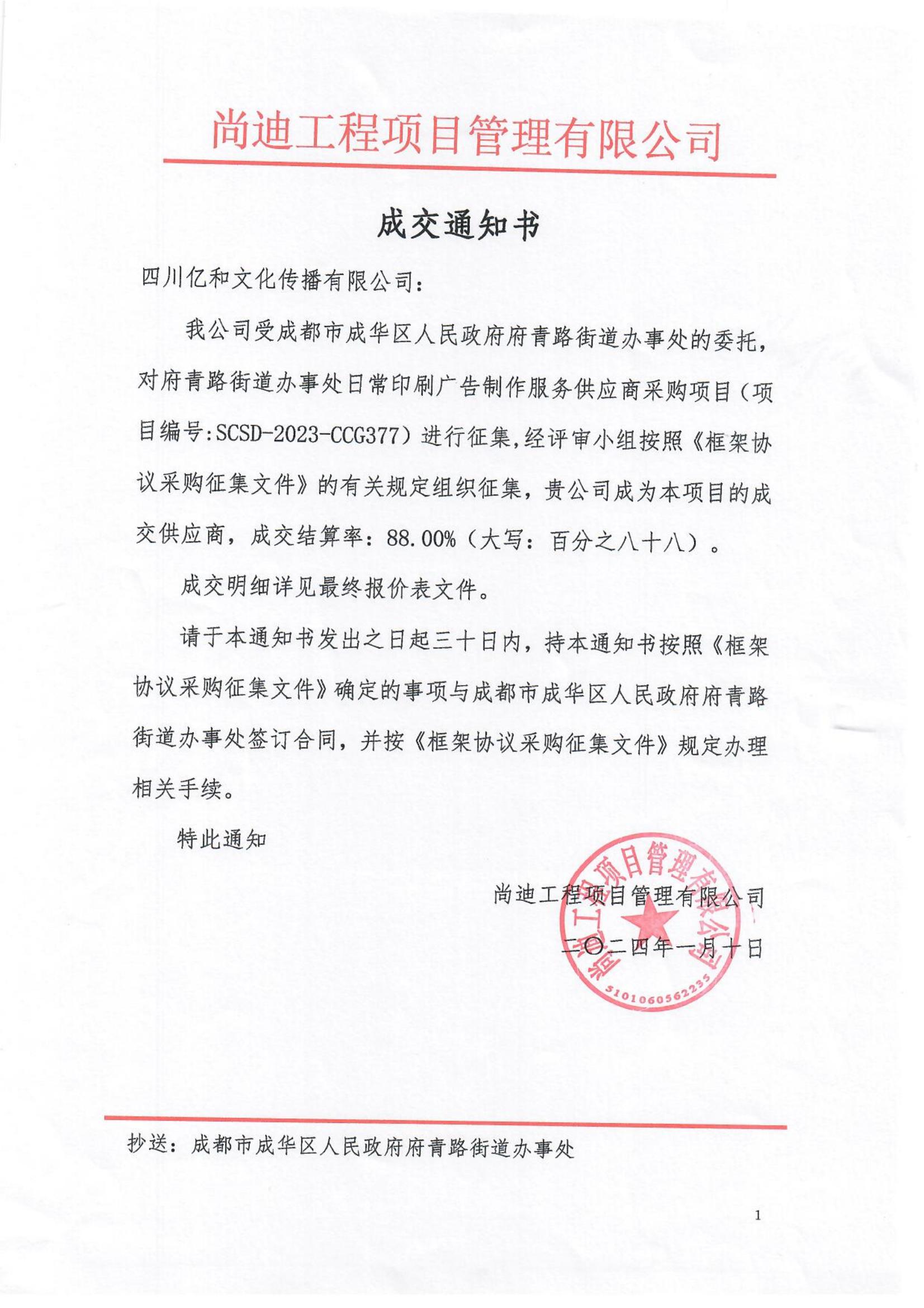 【喜訊】公(gōng)司中(zhōng)标2024年“成都市成華區(qū)人民(mín)政府府青路街(jiē)道辦(bàn)事處日常印刷廣告制作(zuò)服務(wù)供應商(shāng)采購(gòu)項目”!