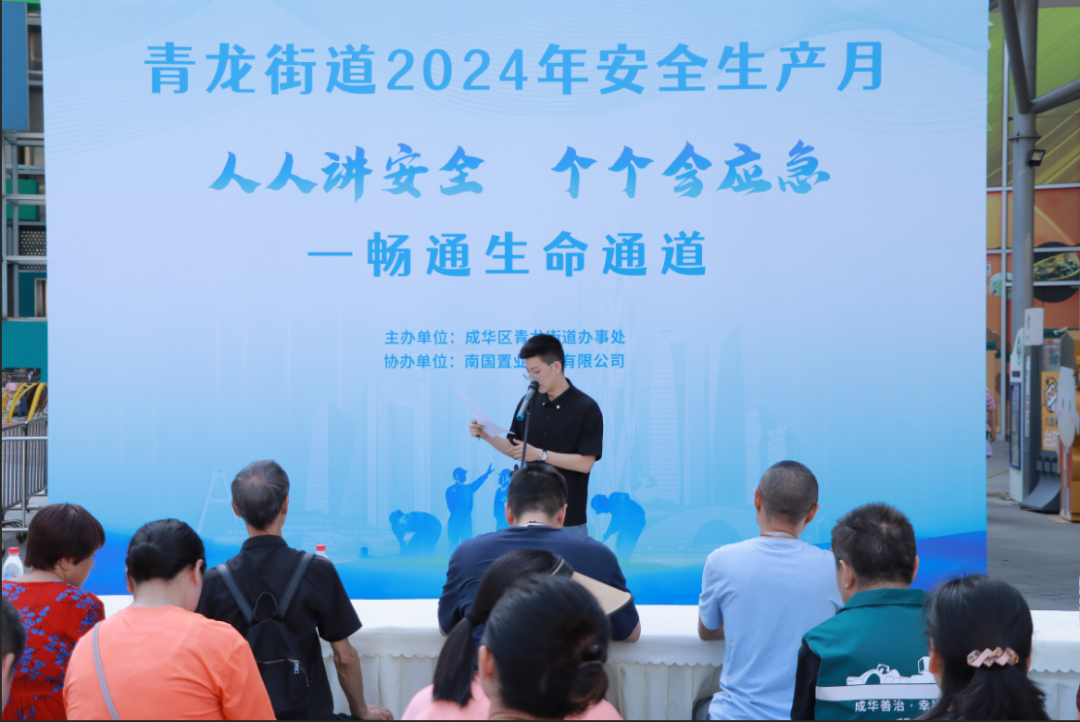 6月25日上午,成華區(qū)青龍街(jiē)道2024年“安(ān)全生産(chǎn)月”活動啓動儀式在泛悅城市廣場舉行。街(jiē)道辦(bàn)領導、街(jiē)道安(ān)委辦(bàn)成員、社區(qū)安(ān)全網格員、轄區(qū)内安(ān)全生産(chǎn)重點行業領域單位代表、居民(mín)代表等共計200餘人參加了本次活動。