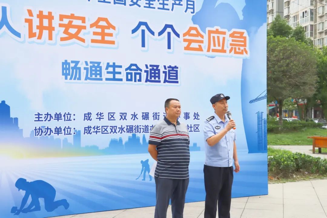 活動首先由雙水碾派出所羅健副所長(cháng)緻辭。羅副所長(cháng)在講話中(zhōng)強調了安(ān)全生産(chǎn)月活動的重要性,号召每位公(gōng)民(mín)都應積極參與到安(ān)全生産(chǎn)的學(xué)習和實踐中(zhōng)來。