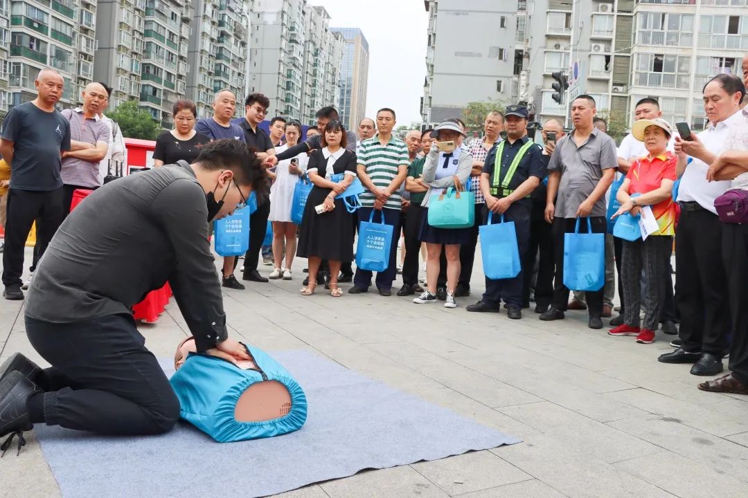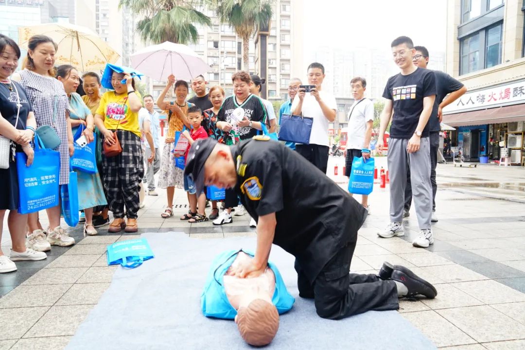 工(gōng)作(zuò)人員現場講解相關安(ān)全理(lǐ)論知識,并邀請群衆參與使用(yòng)滅火器材、學(xué)習人工(gōng)呼吸這一類實踐操作(zuò),從理(lǐ)論到實踐,全方位提升群衆安(ān)全意識與自救互救能(néng)力。